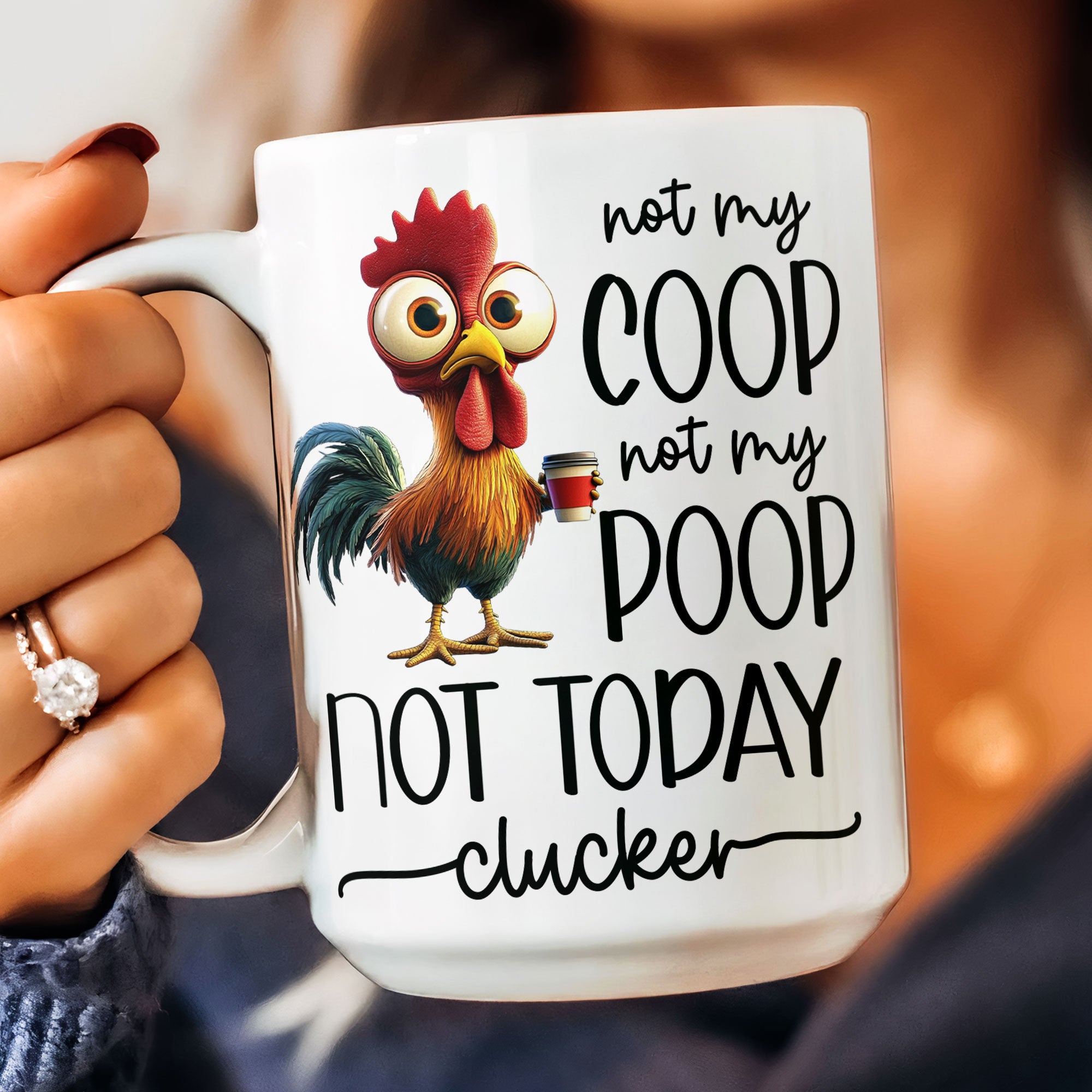 Funny Chicken Mug – Not My Coop Not My Poop Not Today Clucker – Fun Gifts For Coworker, Friends, Boss – Personalized Mug